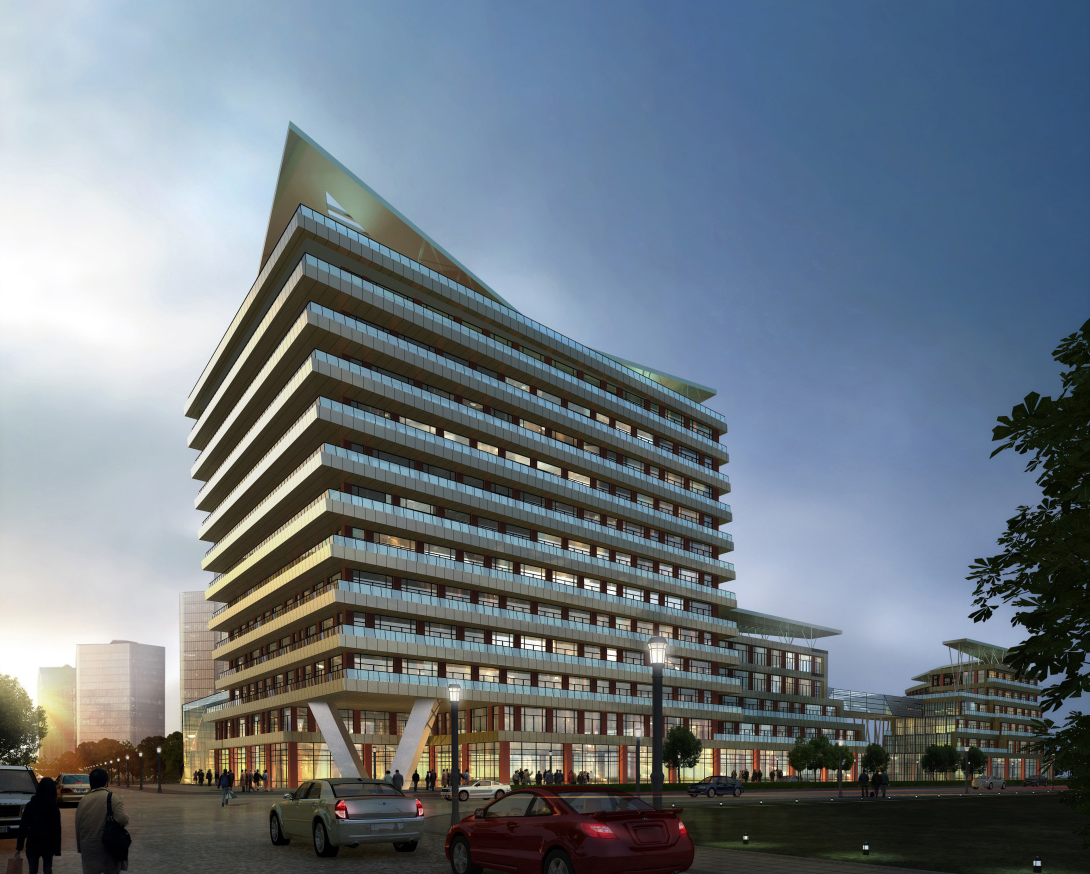 一期总建筑面积55482.14m2,由1#楼(地上7层)、2#楼(地上12层)及地下室(地下2层)组成,地上建筑面积为39178.69m2,地下建筑面积为16303.45m2,建筑高度46.2m,建筑结构为框剪结构。总投资13325.48万元。